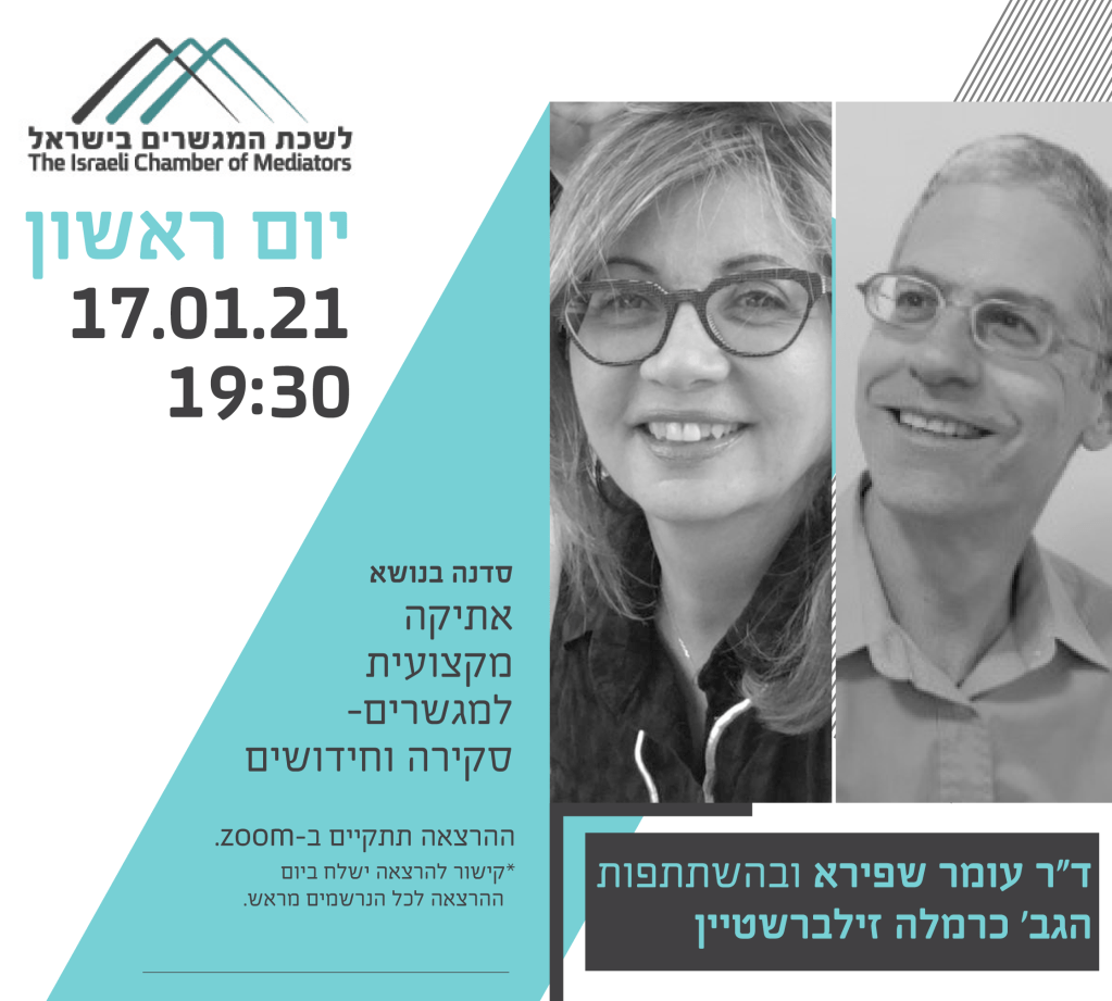 לשכת המגשרים הזמינה אותנו לפתוח את שנת ההשתלמויות המקצועיות המועברות למגשרים חברי הלשכה בהרצאה על אתיקה מקצועית למגשרים – סקירה וחידושים.
